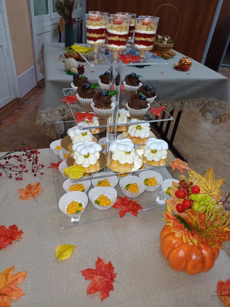 В рамках конкурсного задания командам необходимо было изготовить кондитерские изделия, соответствующие общей теме «Осенний блюз». В частности, участники должны были приготовить два муссовых торта (массой от 500 г до 1 кг каждый), три вида пирожных (по 9 штук каждого вида, весом 25-35 грамм каждое), а также 20 штук зефира одного вида в авторской подаче.